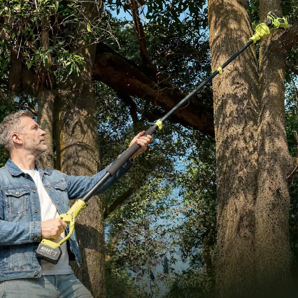 Sięgnij nawet 5 metrów w pełni bezpiecznie – PRZYCINAJ najwyższe gałęzie BEZPOŚREDNIO z ziemi, bez drabiny i dodatkowego sprzętu!